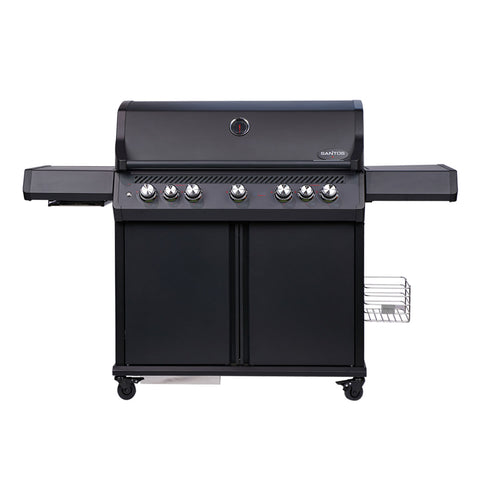 Mehr geht nicht: Der SANTOS S-518 Pro ist mit seiner knapp 1 Meter breiten Grillfläche, 5 Hauptbrennern plus Backburner und 800 °C Steakzone unser Profi-Grill der Extraklasse. Bis zu 20 Personen versorgt der S-518 Pro problemlos mit köstlichen Grillmenüs. Indirektes und direktes Grillen, Braten, Schmoren, Räuchern und Backen ist für das Kraftpaket ein Kinderspiel, neueste Grilltechnologie garantiert dabei eine äußerst gleichmäßige Grill-Performance ohne Kompromisse. Die SANTOS Pro Serie bietet neben der gewohnten S-Serie Top-Ausstattung zusätzliche Ausstattungsmerkmale und geniale Upgrades: Beleuchtete Drehregler, mehr Warmhalterost, mehr Stauraum, weniger Energieverbrauch und eine neue Optik garantieren Euch Grillspaß auf höchstem Niveau.