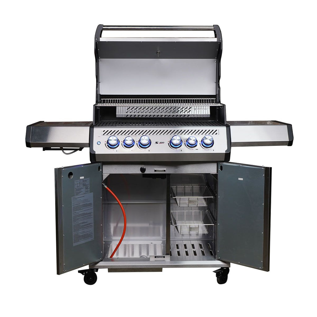 Die in den Farben Blau und Rot beleuchteten Bedienelemente setzen Euren S-418 Pro TST gekonnt in Szene und ermöglichen Euch auch in der Dämmerung und bei Dunkelheit eine präzise Steuerung der Grilltemperatur. Sie sehen nicht nur stylisch aus, sondern zeigen auch an, welcher Brenner gerade mit Gas versorgt wird. Blau bedeutet, dass bei dem entsprechenden Brenner kein Gasfluss vorhanden und der Brenner aus ist. Rot bedeutet, dass die Gaszufuhr geöffnet ist. Hinweis: Bei roter Beleuchtung solltet Ihr zusätzlich überprüfen, ob dieser Brenner auch gezündet ist.