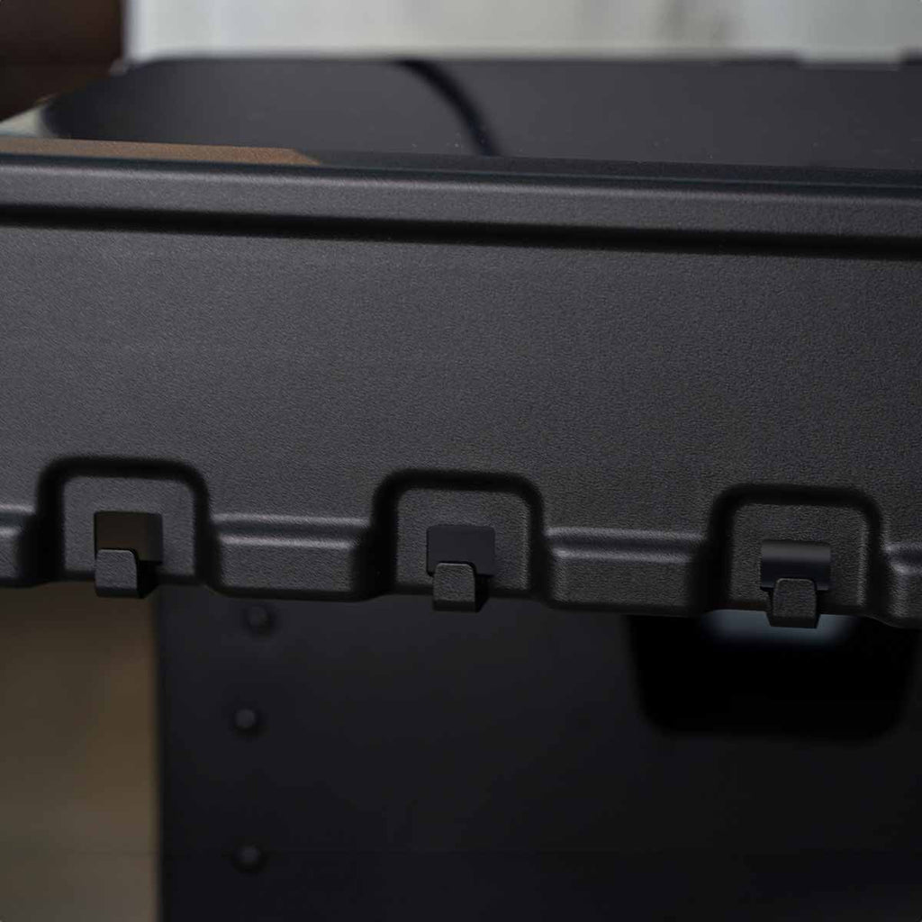 In der linken Seitenablage des Grills ist ein praktischer Seitenkocher integriert. Dieser Ringkocher funktioniert wie die Kochstelle beim Gasherd und bietet Euch unzählige Möglichkeiten, Euer Grillmenü zu perfektionieren. Currysauce, gebratene Zwiebeln, Salzkartoffeln, Hühnersuppe, Wokgerichte oder Nudeln – Beilagen und Vorspeisen lassen sich in Pfanne, Wok oder Topf problemlos auf dem Seitenkocher zubereiten, ohne Platz auf der Hauptgrillfläche zu beanspruchen. Auch beim Wintergrillen kommt die Seitenkochstelle zum Einsatz: Während Ihr auf die Weihnachtsgans vom Drehspieß wartet, sorgt der Seitenkocher mit heißem Punsch oder Glühwein für wohlige Wärme von innen. Und wenn Ihr das Seitenkochfeld gerade nicht benötigt? Dann kann es mit dem integrierten Deckel verschlossen werden und dient Euch so als zusätzliche Abstellfläche für Grillbesteck, Geschirr, Gewürze oder Saucen.