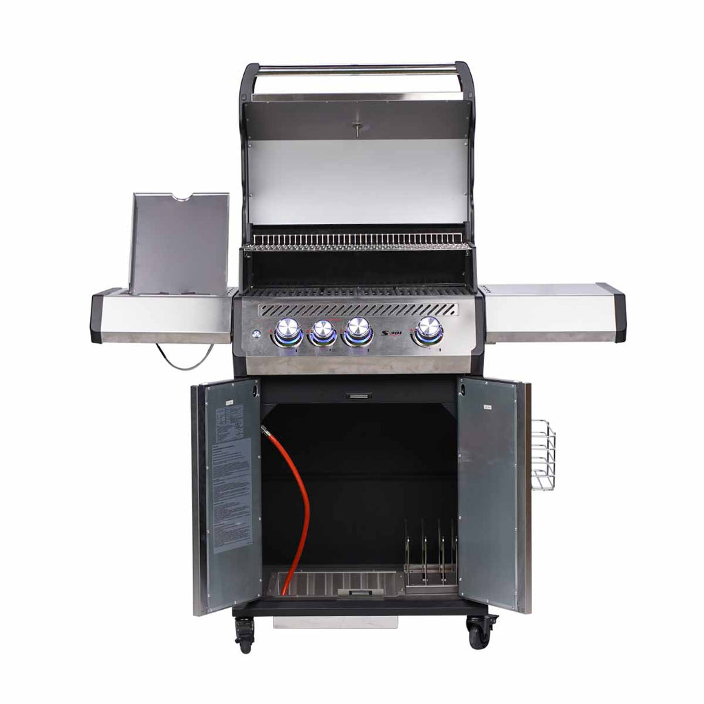 Der S-301 Pro erreicht auf der 60 cm breiten Grillfläche mit 3 Brennern und einer Gesamtleistung von 9 kW ein Temperaturspektrum für alle Grillmethoden – mit niedrigen Temperaturen für Low & Slow-Gerichte bis hin zu hohen Grilltemperaturen für brandheißes Abgrillen von Steaks und Co. Beim indirekten Grillen mit geschlossenem Deckel begeistert der S-301 Pro mit äußerst gleichmäßigen Temperaturen, so dass auch fluffige Pizza vom Pizzastein, knusprige Drehspießgerichte oder selbstgebackene Brote garantiert und köstlich gelingen.
