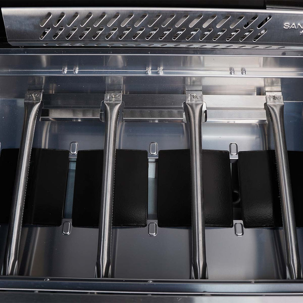 Hochwertig, langlebig und mit allem ausgestattet, was Ihr für Euren Outdoorküchen-Traum braucht: Der SANTOS S-410 Pro Einbaugrill präsentiert sich Euch mit 4 Edelstahl-Brennern, einem 4kW Heckbrenner und einigen genialen Upgrades zum Vorgängermodell.