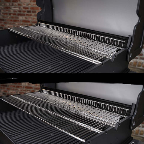 Mehr geht nicht: Der dreiteilige Edelstahl Warmhalterost des Free S-410 Pro lässt sich problemlos von 14 auf 24 bis zu 33,5 cm in der Tiefe ausziehen. So erhaltet Ihr eine maximale Grillfläche zum indirekten Grillen von Hühnchen, zum Nachgaren von Steaks und Burger Patties und zum Warmhalten bereits fertig gegarter Speisen.